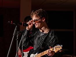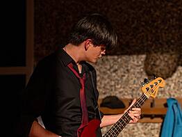 Das Programm des Abends bot beeindruckende Talente aus unserer Schülerschaft. Für einen stimmungsvollen Auftritt sorgte Minh-Long Lai (J2) mit einer berührenden Klavierdarbietung der Stücke Comptine d’un autre été (Yann Tiersen) und River Flows in You (Yiruma). Außerdem brachte die J2-Band die Stimmung auf einen weiteren Höhepunkt. Die Besetzung, bestehend aus Simon Koob, Sinan Celik und Mael Heidt, wurde tatkräftig von Nick, einem ehemaligen Schüler, unterstützt. Gemeinsam lieferten sie den perfekten Sound für die Gesangseinlagen von Lorielle Iyabi (J2) und Juliette Sissoko (J2), die mit ihren Stimmen für Gänsehautmomente sorgten. Insgesamt spielte die Band vier Stücke: End of Beginning (Joe Keery), Eyes Without a Face (Billy Idol), Iris (Goo Goo Dolls) und Valerie (Amy Winehouse).