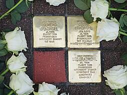 Zum Abschluss der Gedenkveranstaltung legten SchülerInnen und Passanten Rosen neben die frisch verlegten Stolpersteine.
