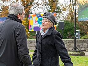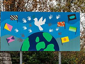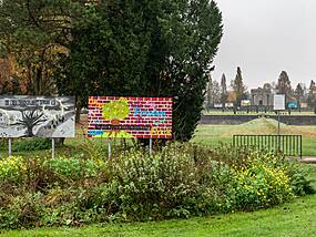 In diesem Jahr präsentierten AG-Mitglieder ihre Graffiti-Wände. Sie ersetzen die Ende 2024 durch Vandalismus zerstörten Tafeln. Die Wände zeigen bunte Friedensbotschaften, mit unterschiedlichen Schriften und Symbolen, und richten sich gegen Krieg, Hass und Gewalt. Sie sollen bereits von weitem die Blicke von Passanten und Besucherinnen auf die Kriegsgräberstätte lenken. Entstanden sind die Wände im Kehler Betriebshof mithilfe des Graffiti-Künstlers Raphael Lieser. Sie ergänzen jetzt die drei Graffiti-Wände, die bereits den Eingang und die Rückseite der Kriegsgräberstätte markieren ebenso wie die 2024 aufgestellte Hörstation.