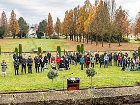 Seit vier Jahren beschäftigen sich Schülerinnen und Schüler der Zeitzeugen-AG mit dem Ort und tragen zu seiner Umgestaltung bei. Auch engagieren sie sich seitdem bei der Gedenkveranstaltung am Volkstrauertag mit eigenen Beiträgen.