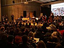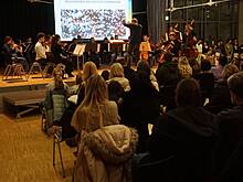 Normalerweise gehen in der Schule zu fortgeschrittener Zeit die Lichter aus – nicht so am Abend der offenen Tür. Am Einstein-Gymnasium hat es gute Tradition, dass die ganze Schulgemeinschaft ihre Schule den interessierten Eltern und Schüler:innen der 4. Klassen vorstellt. Schulleiter Georg Pelzer konnte sich dabei über den großen Andrang freuen, der in der Aula des Schulzentrums am Mittwochabend herrschte. Stimmungsvoll begrüßt wurde das Publikum hier vom Schulorchester, das unter Ersatz-Dirigent Andreas Dilles auch mit einem Arrangement des „Game of Thrones“-Soundtracks aufwartete.