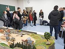 Während ein Teil der Eltern noch gesondert über den bilingualen Zug am Kehler Gymnasium informiert wurde, nahmen andere nun das Angebot an, von Lehrern durchs Schulgebäude geführt zu werden. Hier trafen sie später wieder auf ihre Sprösslinge und konnten den Abend im Hauptatrium an Infoständen und im lockeren Gespräch an Stehtischen ausklingen lassen. Für das leibliche Wohl war bestens gesorgt worden von Schüler:innen und Eltern der 8. Klassen sowie durch den Getränkestand der Jahrgangsstufe 1. Die Gesamtorganisation des Abends lag wieder in den bewährten Händen von „Einstein“-Lehrer Ralf Bock.