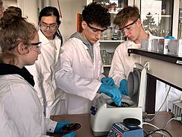 Für die angehenden Einstein-Chemiker:innen sollte dies ein besonderer Tag werden – Praktikum im Karlsruher Institut für Technologie (KIT), endlich einmal in einem professionell ausgestatteten Labor experimentieren!