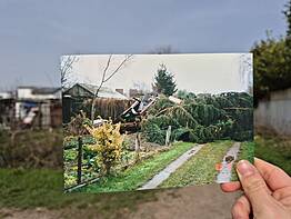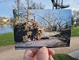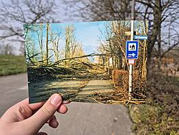 Die Projektgruppe der Zeitzeugen-AG hat in den vergangenen Monaten zahlreiche Fotos gesammelt und diese an den Orten von damals neu aufgenommen. Sie zeigen das Ausmaß der Schäden, die der Sturm angerichtet hat: Von heruntergestürzten Ziegeln, zahllosen entwurzelten Bäumen bis zu abgetragenen Dächern. Außerdem hat die Projektgruppe mit Zeitzeugen gesprochen, die die Fotos aufgenommen haben bzw. damals führend bei der Kehler Feuerwehr die Einsätze bewältigen mussten, nämlich den ehemaligen Feuerwehrkommandanten Gerhard Stech und seinen Stellvertreter Roland Walter. In Goldscheuer unterstützte der Vorsitzende des Vereins für Heimatpflege, Hans Roser, die Projektgruppe bei ihrem Projekt. Eindrucksvolles Foto- und Filmmaterial erhielt die AG auch von Rolf Hoffmann, Erwin Lang, Levent Gündüz sowie Alexander Gehringer.