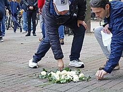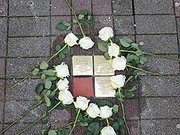 Zum Abschluss der Gedenkveranstaltung legten SchülerInnen und Passanten Rosen neben die frisch verlegten Stolpersteine.