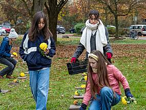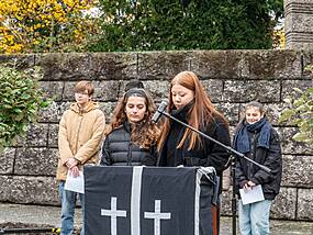 Seit vier Jahren beschäftigen sich Schülerinnen und Schüler der Zeitzeugen-AG mit dem Ort und tragen zu seiner Umgestaltung bei. Auch engagieren sie sich seitdem bei der Gedenkveranstaltung am Volkstrauertag mit eigenen Beiträgen.